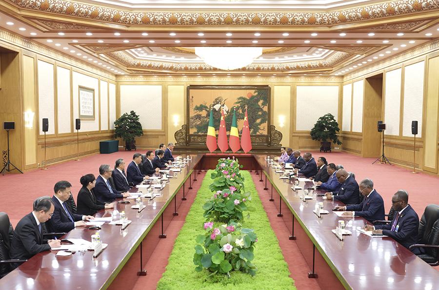 習(xí)近平強(qiáng)調(diào),剛果(布)擔(dān)任中非合作論壇非方共同主席國以來,同中方一道積極推動北京峰會成果落實(shí),取得可喜成績。中方愿同非方共同實(shí)施好“十大伙伴行動”,打造綠色產(chǎn)業(yè)、電子商務(wù)和支付、科技、人工智能等新增長點(diǎn),推動中非合作提質(zhì)升級。當(dāng)前國際形勢變亂交織,中國和非洲作為全球南方重要成員,要肩負(fù)起捍衛(wèi)國際公平正義、維護(hù)世界和平、促進(jìn)共同發(fā)展的歷史責(zé)任,攜手推動構(gòu)建人類命運(yùn)共同體。