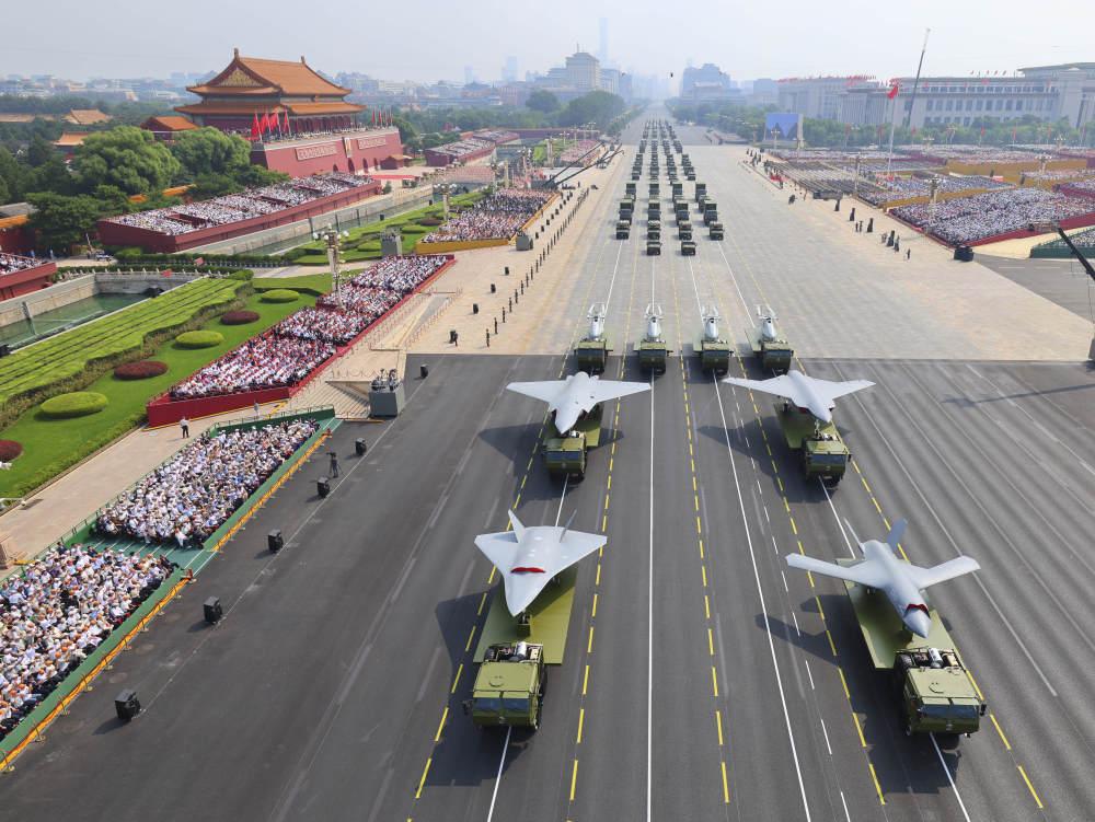 2025年9月3日,紀(jì)念中國人民抗日戰(zhàn)爭暨世界反法西斯戰(zhàn)爭勝利80周年大會在北京隆重舉行。這是裝備方隊(duì)接受檢閱。新華社記者 劉續(xù) 攝