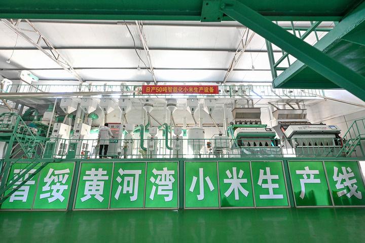 2025年7月1日拍攝的山西省呂梁市興縣晉綏黃河灣農(nóng)業(yè)開發(fā)有限公司的小米生產(chǎn)線??箲?zhàn)時(shí)期,地處晉西北地區(qū)的興縣和靜樂縣是晉綏抗日根據(jù)地的一部分。新華社記者 李鑫 攝