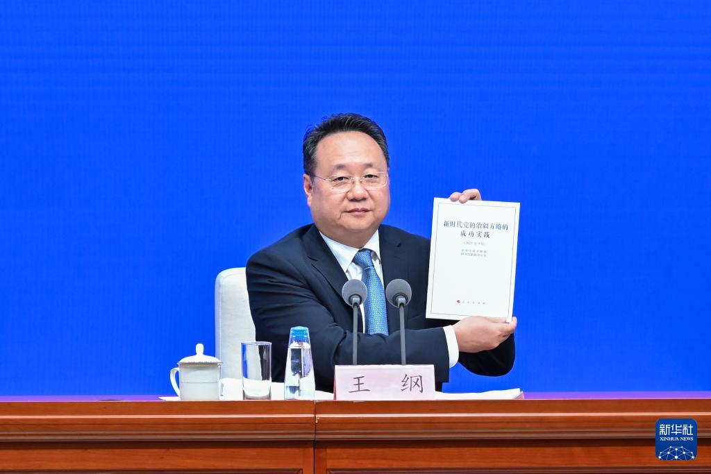 9月19日,國(guó)務(wù)院新聞辦公室在北京舉行新聞發(fā)布會(huì),發(fā)布《新時(shí)代黨的治疆方略的成功實(shí)踐》白皮書,中央宣傳部副部長(zhǎng)王綱,新疆維吾爾自治區(qū)黨委副書記、自治區(qū)主席艾爾肯·吐尼亞孜,新疆維吾爾自治區(qū)黨委常委、自治區(qū)常務(wù)副主席陳偉俊,新疆維吾爾自治區(qū)黨委常委、宣傳部部長(zhǎng)王建新出席,介紹白皮書有關(guān)情況并答記者問(wèn)。這是王綱展示《新時(shí)代黨的治疆方略的成功實(shí)踐》白皮書。新華社記者 李鑫 攝