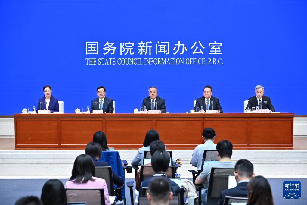 9月19日,國(guó)務(wù)院新聞辦公室在北京舉行新聞發(fā)布會(huì),發(fā)布《新時(shí)代黨的治疆方略的成功實(shí)踐》白皮書,中央宣傳部副部長(zhǎng)王綱,新疆維吾爾自治區(qū)黨委副書記、自治區(qū)主席艾爾肯·吐尼亞孜,新疆維吾爾自治區(qū)黨委常委、自治區(qū)常務(wù)副主席陳偉俊,新疆維吾爾自治區(qū)黨委常委、宣傳部部長(zhǎng)王建新出席,介紹白皮書有關(guān)情況并答記者問(wèn)。新華社記者 李鑫 攝