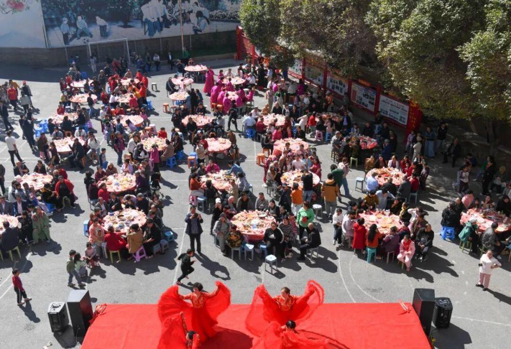 人們?cè)跒豸斈君R市天山區(qū)固原巷社區(qū)舉辦的活動(dòng)中品嘗百家宴,欣賞文藝演出。新華社記者 王菲 攝