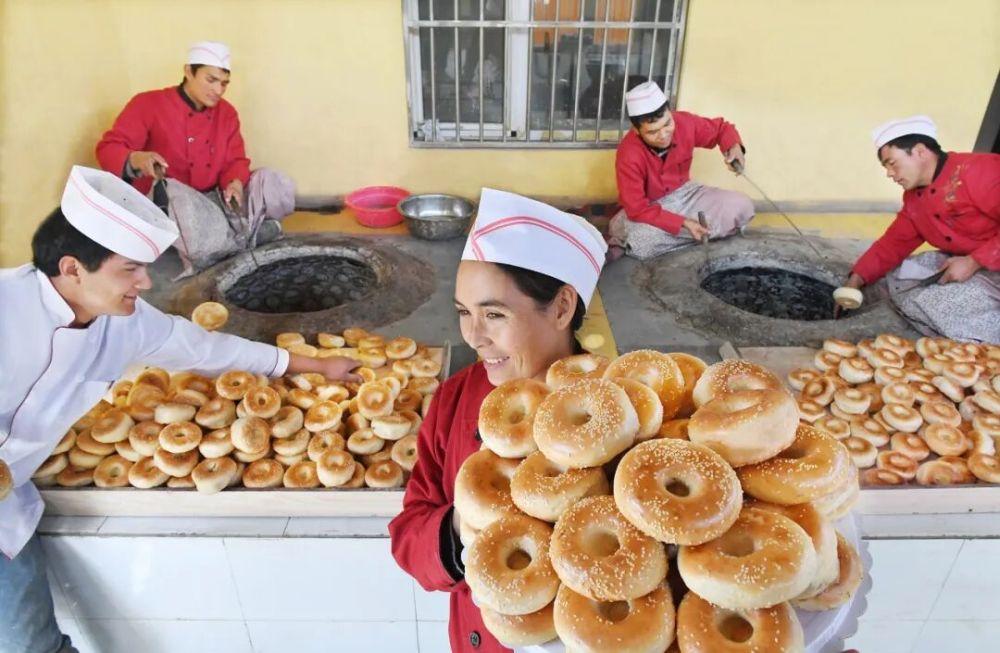 克孜勒蘇柯?tīng)柨俗巫灾沃莅⒖颂湛h巴仁鄉(xiāng)巴仁村烤馕合作社。約提克爾·尼加提 攝