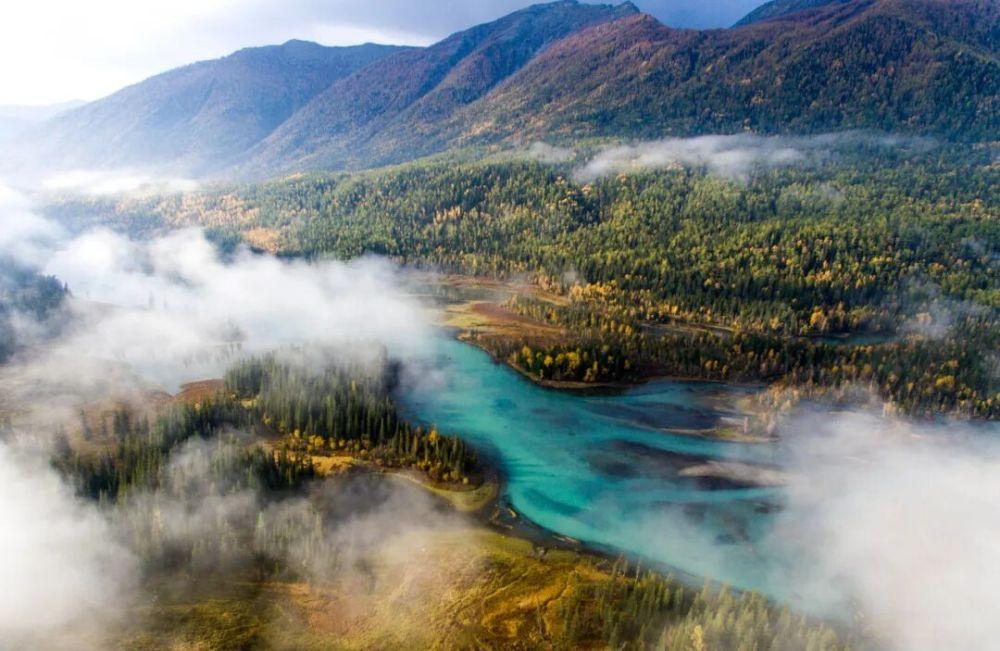 無(wú)人機(jī)拍攝的喀納斯景區(qū)風(fēng)光。新華社記者 王菲 攝