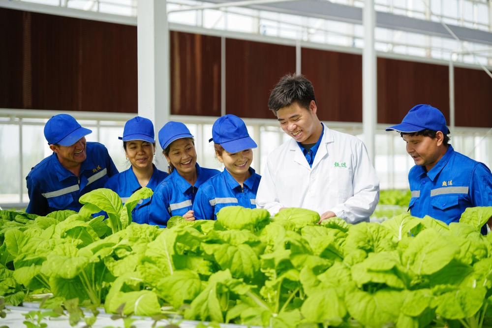 2025年6月25日,在新疆阿克蘇地區(qū)庫車市甬庫同心村智慧農(nóng)業(yè)植物工廠,技術(shù)人員在培訓(xùn)當(dāng)?shù)氐霓r(nóng)業(yè)產(chǎn)業(yè)工人。該工廠是浙江省寧波市對口援疆項目之一,引入了寧波企業(yè)先進(jìn)的無土栽培技術(shù)和設(shè)備,通過智能調(diào)控成功種植多種原本不適宜在當(dāng)?shù)厣娴霓r(nóng)作物。該項目在幫助村民在家門口實現(xiàn)就業(yè)的同時,還為當(dāng)?shù)嘏囵B(yǎng)了農(nóng)業(yè)產(chǎn)業(yè)工人,同時為周邊學(xué)校開展農(nóng)業(yè)科技科普提供了便利,實現(xiàn)經(jīng)濟(jì)效益與社會效益“雙豐收”。