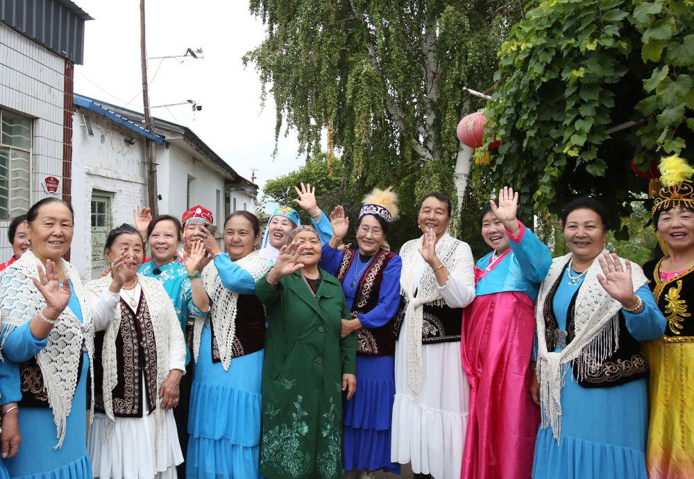 2025年9月9日,新疆阿勒泰地區(qū)阿勒泰市紅墩鎮(zhèn)的老人在“戶兒家”文化大院合影,該鎮(zhèn)居民由漢族、哈薩克族、維吾爾族、蒙古族等11個民族組成?!皯魞杭摇痹从谇迥?,是哈薩克族對甘肅、山西、陜西等省遷居紅墩鎮(zhèn)的40戶漢族居民的稱呼。100多年來,“戶兒家”幾代人與各族群眾相互融合、共同發(fā)展,成為各民族相互交融的典范。