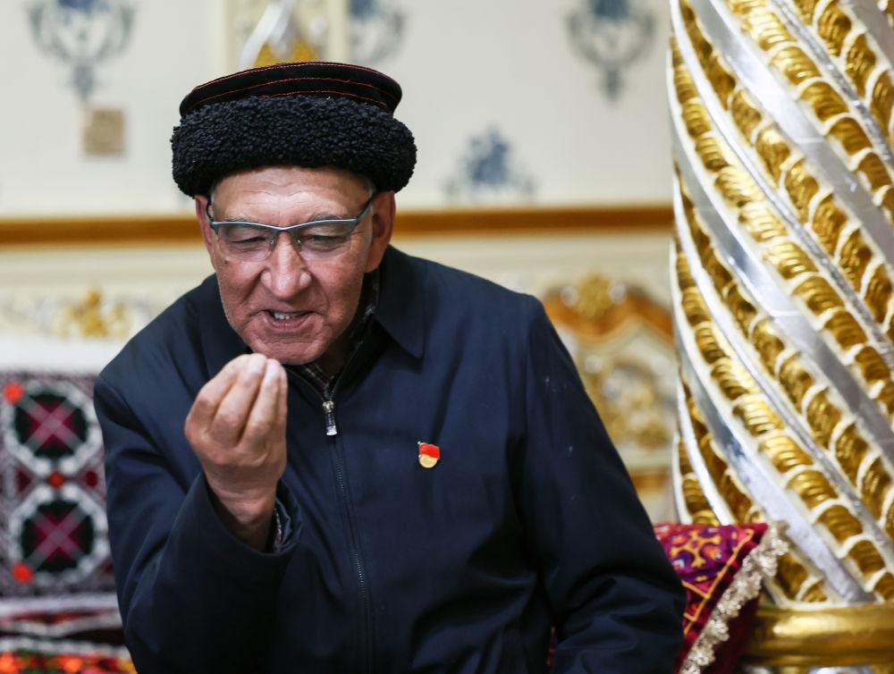 2023年9月4日,“時代楷?!崩R尼·巴依卡的父親巴依卡老人在新疆塔什庫爾干塔吉克自治縣的家中接受采訪。生活于帕米爾高原上的塔吉克族兒女,素來心中懷有“家是塔縣,國是中國,放牧守邊是職責(zé)”的愛國守邊精神。巴依卡老人一家三代70年接續(xù)守邊護(hù)邊,愛國奉獻(xiàn)的壯舉感動了無數(shù)國人?!斑吘尘€是中國的邊境線,紅其拉甫是中國56個民族的紅其拉甫,我們的56個民族就要像石榴籽一樣緊緊抱在一起?!卑鸵揽ɡ先苏f。