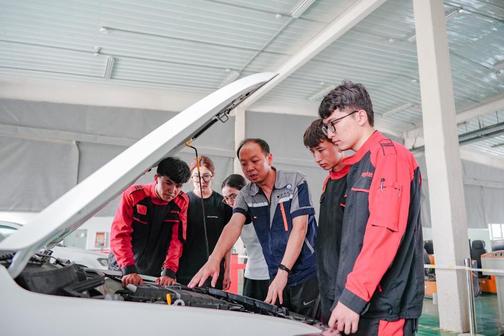 2025年6月27日,在新疆和田技師學(xué)院,援疆教師李寶(中)和當(dāng)?shù)亟處熞煌笇?dǎo)學(xué)生維修汽車。該校是北京市對口援疆幫扶單位之一,2020年以來,北京市向該校派出3批次累計30人次的援疆教師隊伍,他們在參與學(xué)校管理、承擔(dān)教學(xué)任務(wù)的基礎(chǔ)上,還主動開展“傳幫帶”培養(yǎng)當(dāng)?shù)亟處?,積極組織和指導(dǎo)學(xué)生參與各類技能競賽,為當(dāng)?shù)芈殬I(yè)技術(shù)教育高質(zhì)量發(fā)展貢獻(xiàn)力量。
