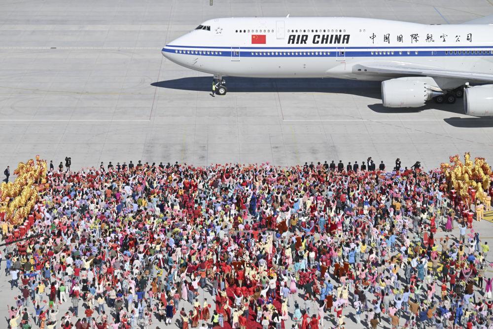 9月23日,中共中央總書(shū)記、國(guó)家主席、中央軍委主席習(xí)近平率中央代表團(tuán)抵達(dá)烏魯木齊,出席新疆維吾爾自治區(qū)成立70周年慶?;顒?dòng)。