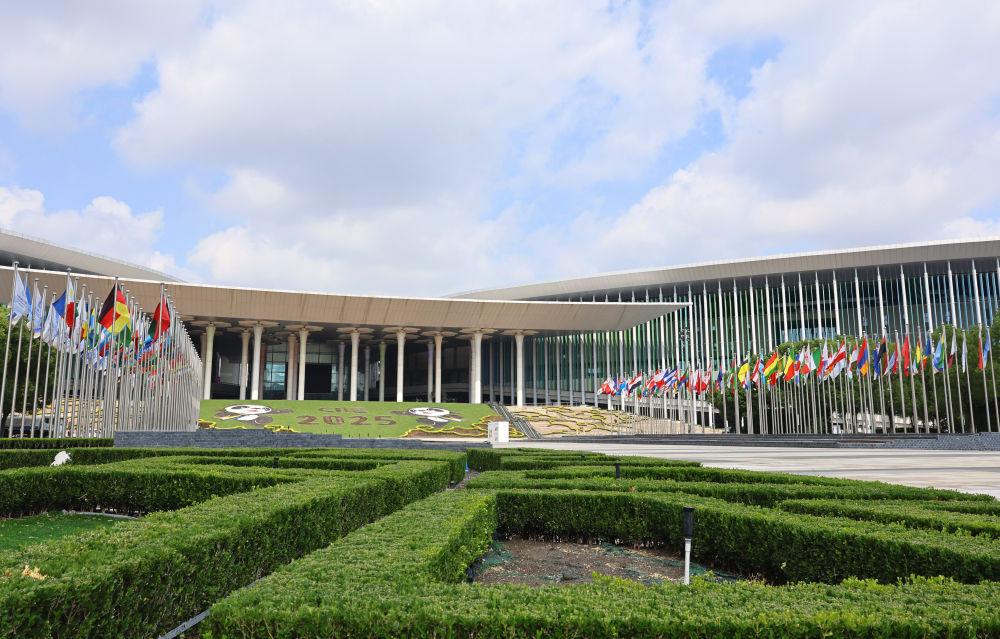 這是2025年10月5日拍攝的國家會(huì)展中心(上海)南廣場。新華社記者 方喆 攝