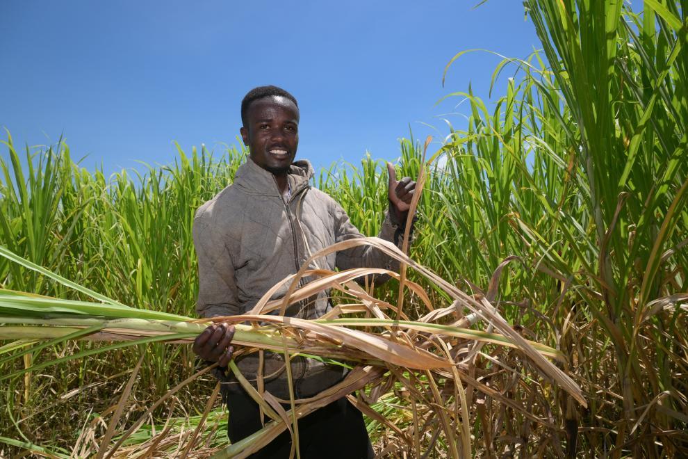 2025年10月14日,在肯尼亞西部納庫(kù)魯郡,工人在菌草種植園內(nèi)收割菌草。新華社記者 楊光 攝