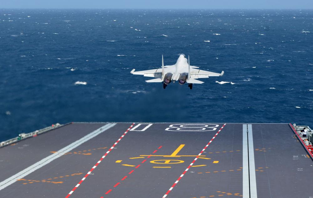 海軍福建艦開展入列后首次海上實兵訓(xùn)練期間,殲-15DT艦載機彈射起飛(資料照片)。新華社發(fā)(高澤明 攝)