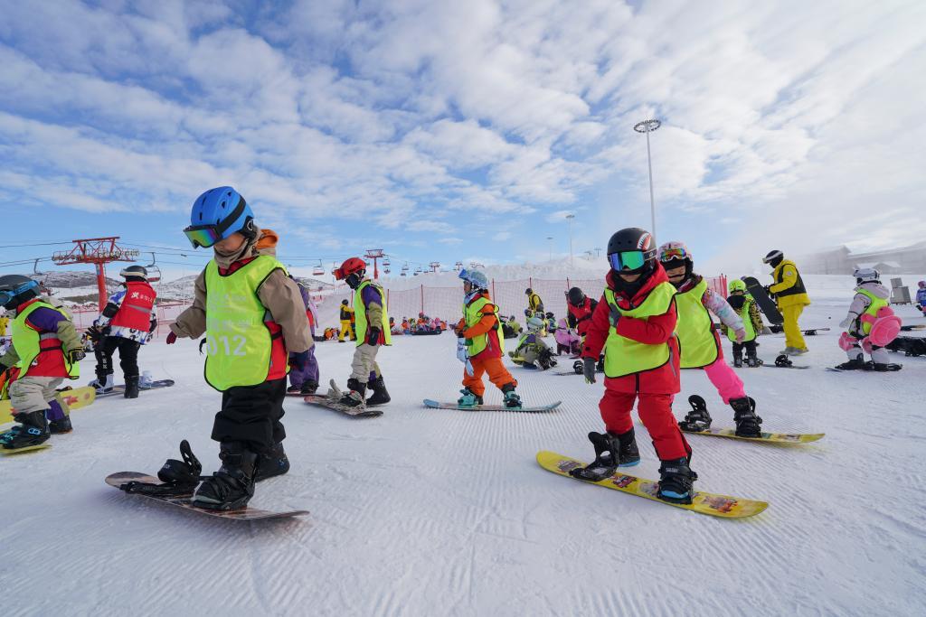 2025年12月1日,學(xué)生在阿勒泰將軍山國際滑雪度假區(qū)練習(xí)單板滑雪。新華社記者 阿曼 攝