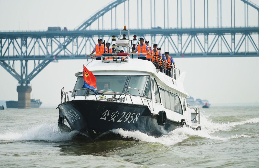 2025年9月,“一江三省四警”長江聯(lián)合執(zhí)法隊在長江九江段水域巡邏。新華社發(fā)(柯潔男 攝)