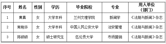 經(jīng)公開招聘,擬錄用以下3人為報社聘用人員,現(xiàn)將擬錄用人員信息公示如下: