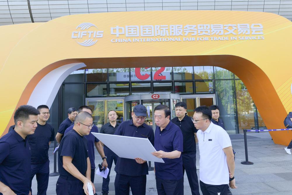 2023年8月28日,董亦軍同志(前右二)在中國國際服務貿易交易會舉辦地,對交通服務保障工作進行現(xiàn)場踏勘。新華社發(fā)