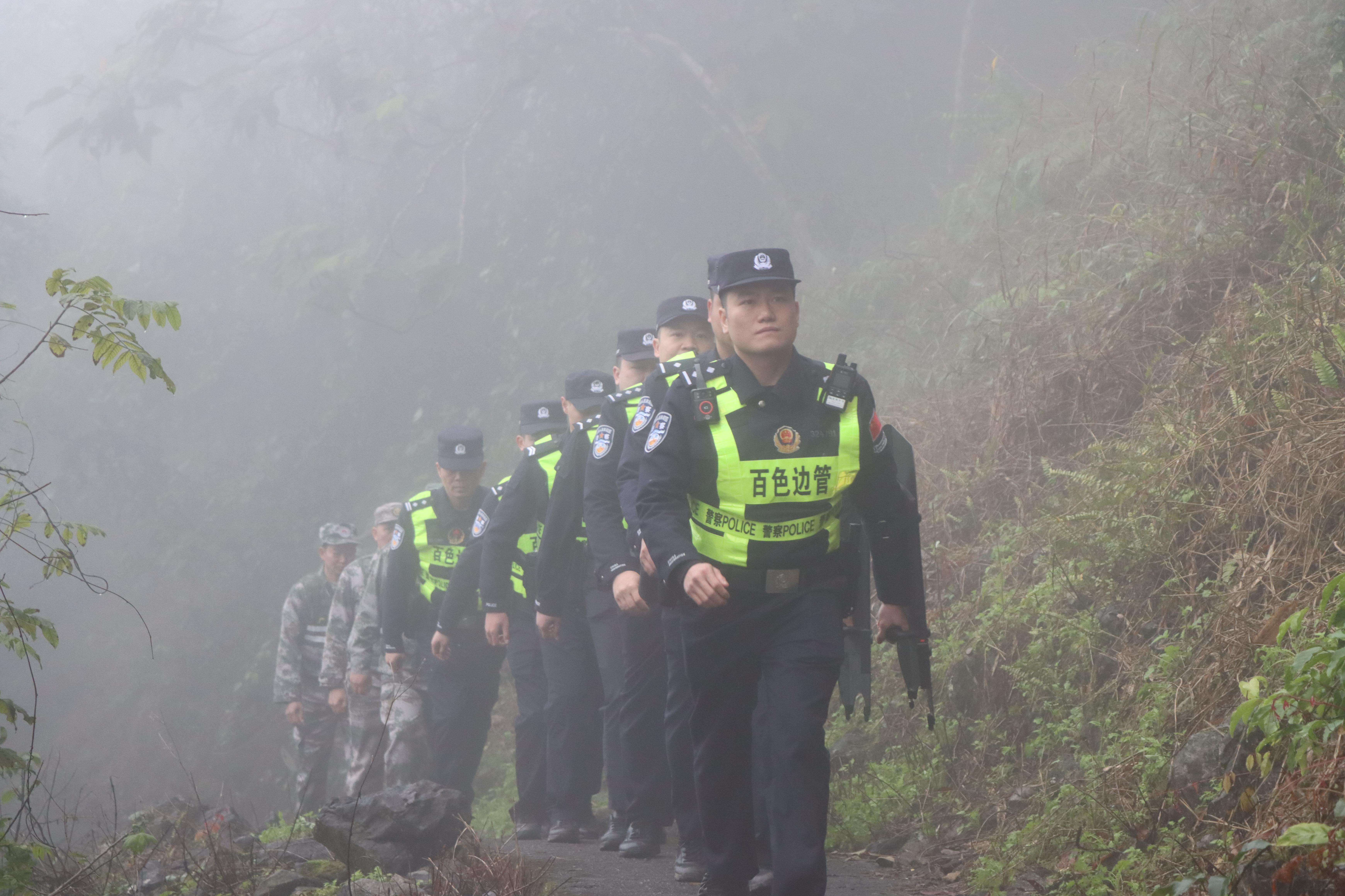 2月10日上午,廣西出入境邊防檢查總站百色邊境管理支隊(duì)百南邊境派出所副所長(zhǎng)吳惠財(cái)帶領(lǐng)民警與護(hù)邊員,沿著中越邊境588號(hào)界碑方向開(kāi)展巡邏踏查。