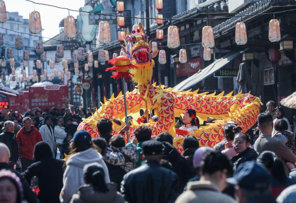 2026年2月8日,游客在浙江壽昌古鎮(zhèn)老街上觀看傳統(tǒng)舞龍表演。近期,浙江省建德市壽昌古鎮(zhèn)舉辦傳統(tǒng)民俗迎新春活動,民俗踩街、舞龍舞獅、馬年主題燈展等活動,吸引八方游客前來體驗古鎮(zhèn)傳統(tǒng)年味,進一步激活新春消費市場,為當?shù)匚穆媒?jīng)濟發(fā)展注入新動能。