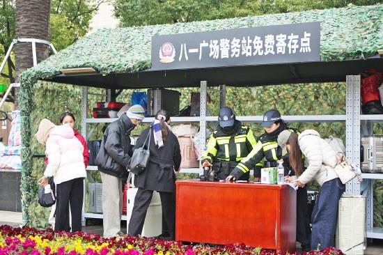 “我們設(shè)置行李免費(fèi)寄存點(diǎn),就是要為網(wǎng)紅城市增添民生溫度?!蹦喜泄簿痔匮簿ш?duì)女警中隊(duì)中隊(duì)長胡文娟介紹說,今年1月,八一廣場警務(wù)站創(chuàng)新設(shè)立行李免費(fèi)寄存點(diǎn),由女警團(tuán)隊(duì)全程值守,寄存點(diǎn)實(shí)行“登記—存放—領(lǐng)取”全流程規(guī)范服務(wù),女警們憑借女性特有的細(xì)致耐心,為游客提供行李看管、咨詢引導(dǎo)等“一站式”服務(wù)。