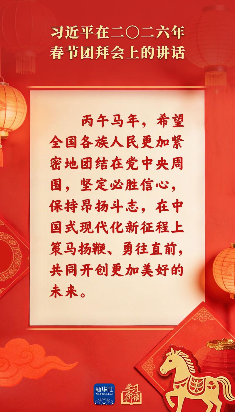 原標(biāo)題:學(xué)習(xí)新語|策馬揚鞭、勇往直前!2026年春節(jié)團拜會總書記講話金句