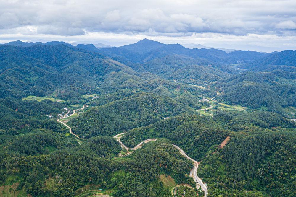 這是2025年7月22日在海南省保亭黎族苗族自治縣毛感鄉(xiāng)拍攝的熱帶雨林及蜿蜒其中的環(huán)熱帶雨林國(guó)家公園旅游公路(無(wú)人機(jī)照片)。新華社記者 蒲曉旭 攝