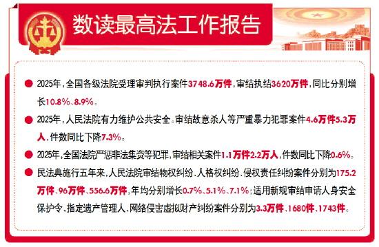 報(bào)告著重強(qiáng)調(diào)“恪守公平正義”,圍繞“保障高水平安全”“服務(wù)高質(zhì)量發(fā)展”“守護(hù)高品質(zhì)生活”“助力高水平開(kāi)放”等方面,回顧了2025年人民法院各項(xiàng)工作。