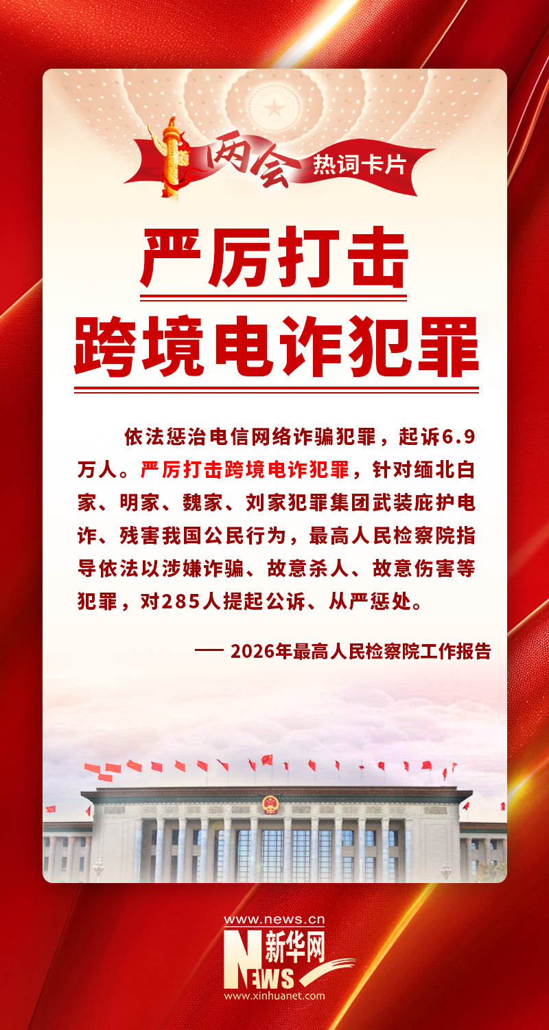 要依法嚴厲打擊電信網(wǎng)絡(luò)詐騙活動,狠打金主頭目。(2026年中央政法工作會議)