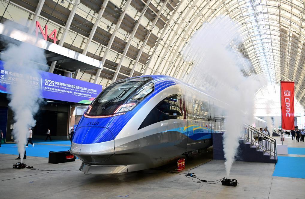 2025年9月18日,由中國中車自主研制且擁有完全自主知識產權的首列中國標準智能市域列車暨京雄快線列車在青島亮相。新華社記者 李紫恒 攝