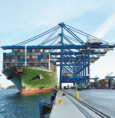 11月6日,一艘貨輪在中遠(yuǎn)海運(yùn)比雷埃夫斯港集裝箱3號(hào)碼頭裝卸貨物。 本報(bào)記者 韓秉宸攝