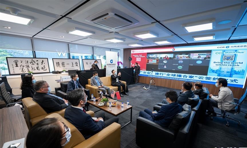 6月17日,馬來西亞總理對(duì)華事務(wù)特使張慶信在吉隆坡表示,本周開幕的第127屆廣交會(huì)以網(wǎng)上形式舉行,在新冠疫情背景下為推動(dòng)“一帶一路”相關(guān)經(jīng)貿(mào)合作提供新機(jī)遇。 圖為6月17日,在馬來西亞吉隆坡,與會(huì)者在中馬跨境“云簽約”活動(dòng)上連線。 新華社記者 朱煒 攝新華社記者 朱煒 攝