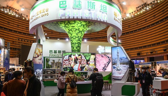 11月27日,在廣西南寧國(guó)際會(huì)展中心,消費(fèi)者在“一帶一路”國(guó)際展區(qū)選購商品。 新華社記者 張愛林 攝