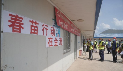 “防控新冠、人人有責(zé)、齊心協(xié)力打贏疫情。”——中柬雙語的紅色橫幅前,金邊-西港高速公路(簡稱“金港高速”)項目的數(shù)百名中方員工盼來了來自祖國的新冠疫苗。