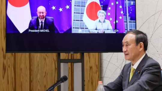 第27屆歐盟-日本峰會27日以線上方式舉行,歐洲理事會主席米歇爾、歐盟委員會主席馮德萊恩和日本首相菅義偉與會。會后發(fā)表的聯(lián)合聲明說,雙方支持今年夏天以“安全和有保障的方式”舉辦東京奧運會和殘奧會,這是“全球團結(jié)打敗新冠疫情”的一個象征。