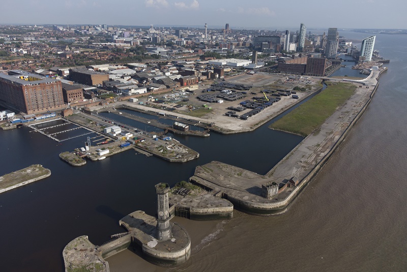 這是7月21日在英國利物浦拍攝的利物浦海上商城碼頭區(qū)(無人機照片)。當(dāng)?shù)刈闱蚓銟凡坑媱澰诖颂幣d建一座現(xiàn)代化足球場。