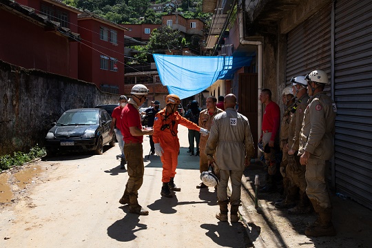2月22日,在巴西里約熱內(nèi)盧州城市彼得羅波利斯,消防人員準備開展搜救行動。