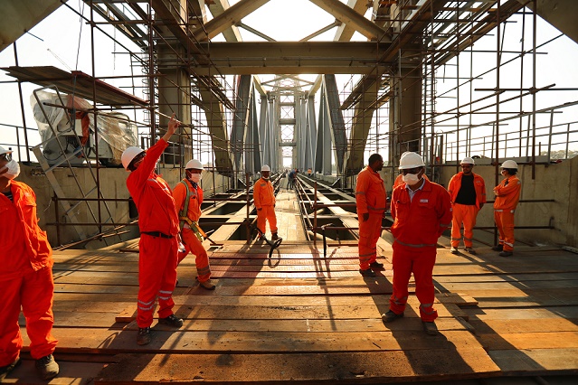 在埃及伊斯梅利亞省,由中企承建的蘇伊士運河鐵路橋舊橋改造升級項目主體結構近日完工。目前施工人員正抓緊收尾,以確保早日交付埃方。