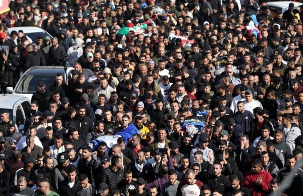 圖為1月26日,人們?cè)诩s旦河西岸城市杰寧參加被以色列軍隊(duì)打死的巴勒斯坦人的葬禮。新華社發(fā)(艾曼·努巴尼攝)