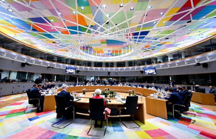 圖為6月26日在比利時(shí)布魯塞爾拍攝的歐盟峰會(huì)現(xiàn)場(chǎng)。新華社發(fā)