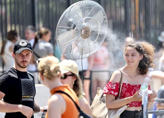 受“熱穹頂”影響,6月以來,乃至進(jìn)入7月,極端高溫天氣席卷北半球多國(guó)。圖為6月27日,在意大利羅馬,游客在斗獸場(chǎng)附近一處風(fēng)扇下納涼。 新華社記者 李京 攝