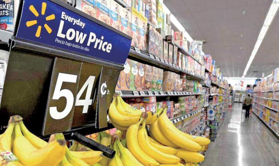 圖為5月21日在美國加利福尼亞州洛杉磯縣一家沃爾瑪超市拍攝的圖片顯示自哥斯達黎加進口的香蕉價格已經(jīng)漲至每磅54美分。 新華社記者 高山攝