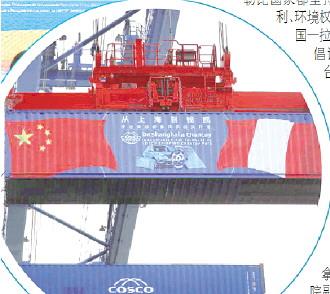 圖② 2024年11月14日,在秘魯首都利馬以北的錢凱港,岸邊智能化設備吊裝集裝箱。