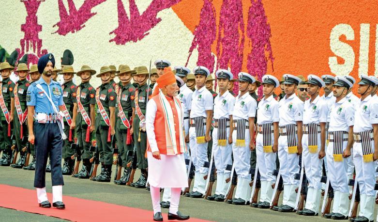 當(dāng)?shù)貢r(shí)間2025年8月15日,印度新德里,印度總理莫迪在紅堡檢閱儀仗隊(duì),慶祝印度第79個(gè)獨(dú)立日。莫迪在講話中強(qiáng)調(diào)建設(shè)“發(fā)達(dá)印度”,并宣布了包括下一代商品和服務(wù)稅改革及面向青年的“總理發(fā)達(dá)印度就業(yè)計(jì)劃”在內(nèi)的重大舉措。 CFP供圖