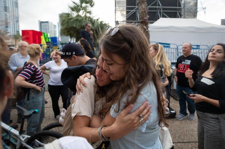 10月9日,在以色列特拉維夫,人們獲悉加沙?;饏f(xié)議的消息后相互慶祝,期待被扣押的人員早日獲釋。新華社記者陳君清攝