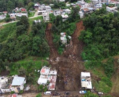 這是10月13日在墨西哥普埃布拉州瓦烏奇南戈市拍攝的降雨引發(fā)的山體滑坡現(xiàn)場(chǎng)(無人機(jī)照片)。新華社發(fā)(弗朗西斯科·卡涅多攝)