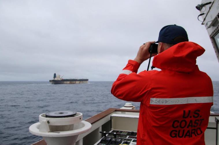 美國歐洲司令部1月7日發(fā)布在社交媒體上的照片顯示,一名美國海岸警衛(wèi)隊官員使用望遠鏡查看“貝拉1”號油輪。美國歐洲司令部1月7日在社交媒體上發(fā)布的消息稱,美國當天扣押“貝拉1”號油輪。 新華社/路透