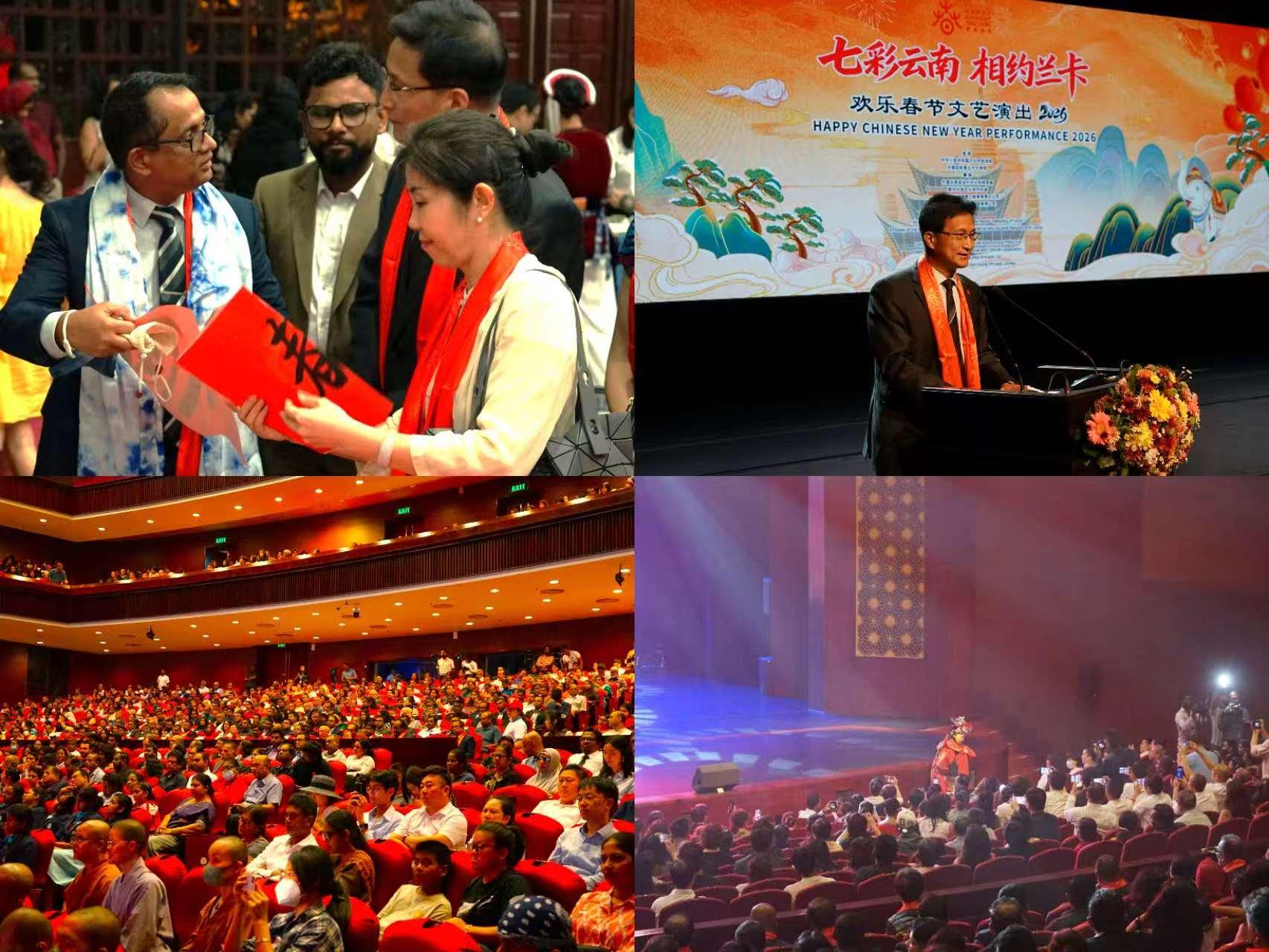 為促進中斯文化交流、深化傳統(tǒng)友誼,由中國文化和旅游部與中國駐斯里蘭卡大使館共同主辦的2026年“歡樂春節(jié)”系列活動于1月27在斯里蘭卡拉開序幕。其中,首場演出于1月27日晚在中國援建的斯最重要的文化場館——蓮花劇院舉行,斯國家領導人、政商文各界人士約1200人觀看演出。