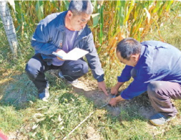 馬建新現(xiàn)場(chǎng)測(cè)量土地,調(diào)解田某5兄弟之間土地糾紛。