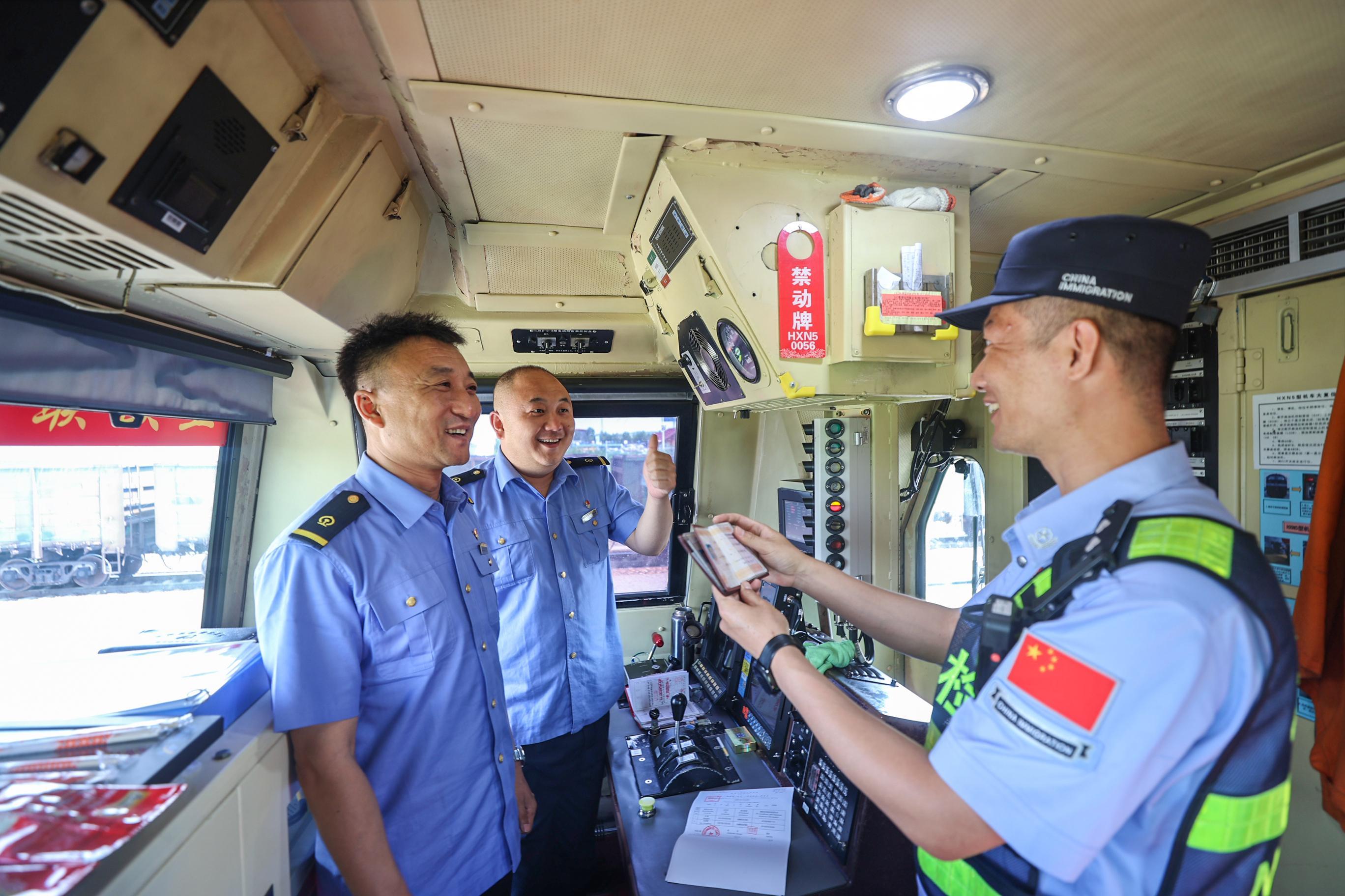 圖為滿洲里邊檢站移民管理警察高效護(hù)航中歐班列獲點(diǎn)贊。