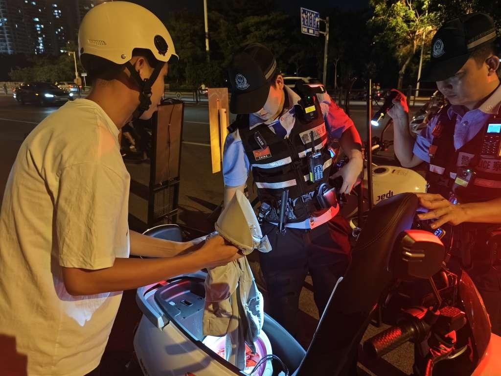 三亞市公安局交管支隊以主城區(qū)為中心點,圍繞道路交通安全,嚴查電動車未佩戴安全頭盔、飆車炸街、酒駕醉駕、無證駕駛等交通違法行為,形成有力震懾。針對夏季夜間酒后駕駛違法行為多發(fā)時間、區(qū)域和主要路段,靈活設(shè)置臨時檢查點,采取“定點查處+流動執(zhí)法”等方式,切實形成嚴防、嚴控、嚴打態(tài)勢。同時,廣泛開展交通安全宣傳,以群眾“看得見、容易懂、記得住”的方式,有針對性地開展宣傳教育,切實提升群眾安全防范意識。