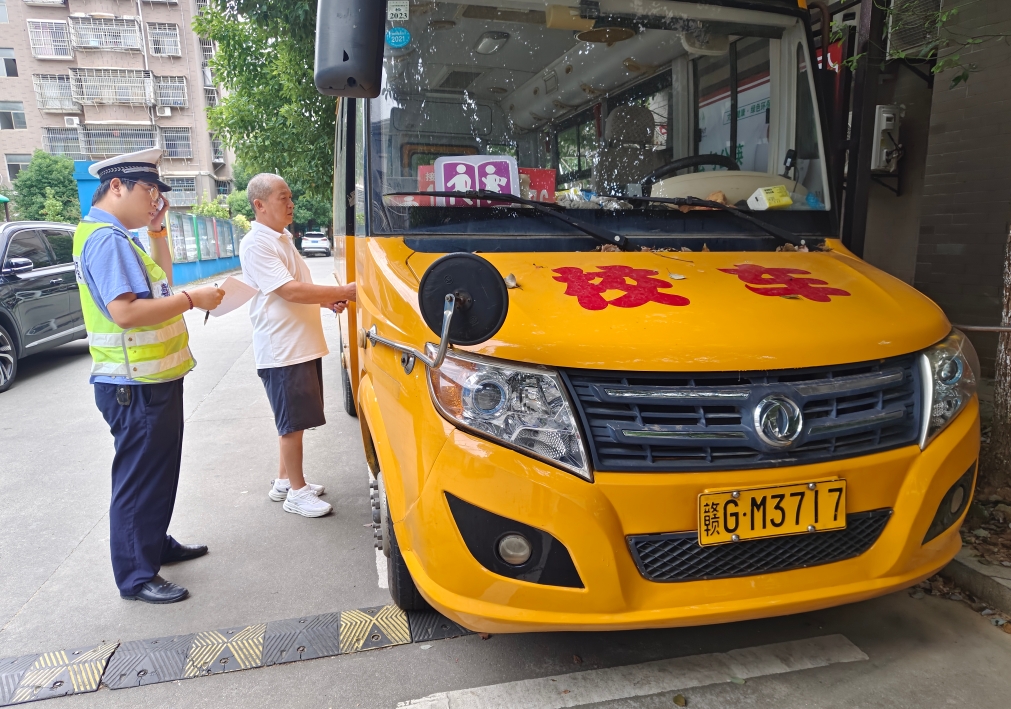 連日來,江西省武寧縣公安局交管大隊組織民警深入轄區(qū)校園,對校車進行安全“體檢”,與校車所屬單位和駕駛員簽訂交通安全承諾書,杜絕校車“帶病”上路。
